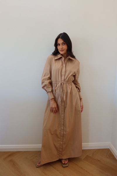 AYA by Mira is the best of both worlds, a dress and a trench coat all in one. Keeping true to the classic fit AYA is perfect for the city girl. Made with a light weight cotton and is a maxi length. Throw on a pair of stockings and button it down to wear as a dress to dinner or slip on some tailored pants and loafers to wear as a trench coat for a shopping trip in the city. She is the perfect Autumn/Winter staple.