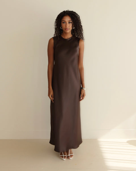 SATIN SLIP DRESS CHOC